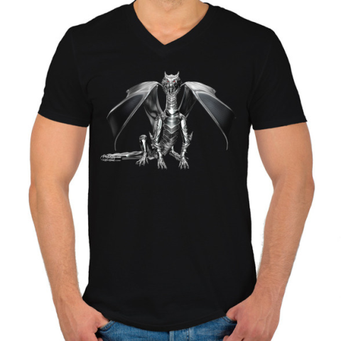 1 kép PRINTFASHION Acélsárkány - Férfi V-nyakú póló - Fekete