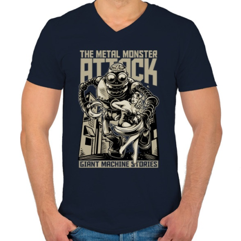 1 kép PRINTFASHION Acélszörny - Férfi V-nyakú póló - Sötétkék