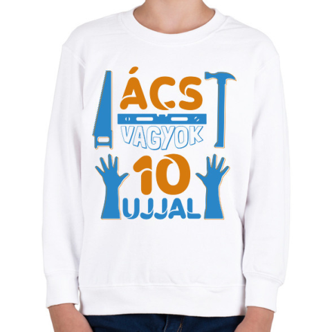 1 kép PRINTFASHION Ács vagyok 10 ujjal - Gyerek pulóver - Fehér