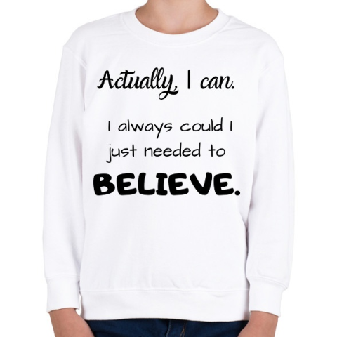 1 kép PRINTFASHION Actually I can, I always BELIEVE - Gyerek pulóver - Fehér