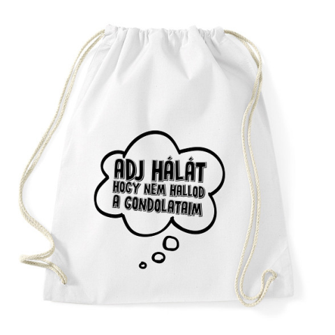 1 kép PRINTFASHION Adj hálát hogy nem hallod a gondolataim - Sportzsák, Tornazsák - Fehér