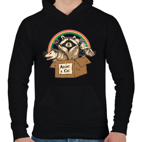 1 kép PRINTFASHION Adopt a cat - Férfi kapucnis pulóver - Fekete
