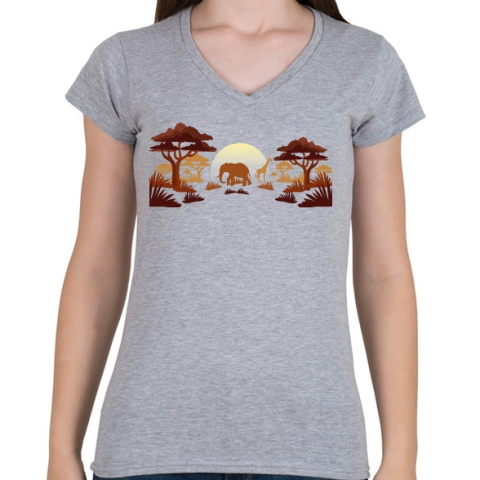 1 kép PRINTFASHION Afrika - Női V-nyakú póló - Sport szürke