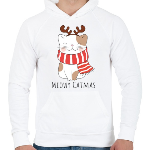 1 kép PRINTFASHION Agancsos cica - Férfi kapucnis pulóver - Fehér