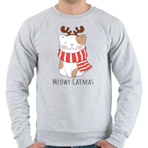 1 kép PRINTFASHION Agancsos cica - Férfi pulóver - Sport szürke