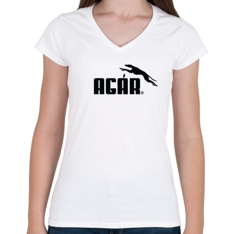 1 kép PRINTFASHION Agár / greyhound logó (fekete) - Női V-nyakú póló - Fehér