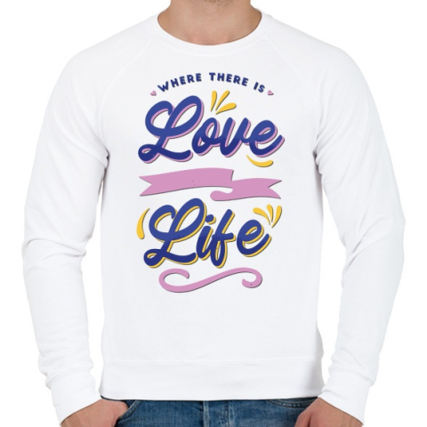 1 kép PRINTFASHION Ahol szerelem van , élet van - Where is love... - Férfi pulóver - Fehér
