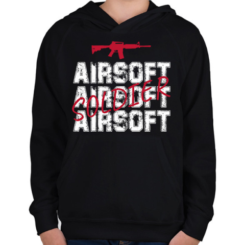 1 kép PRINTFASHION Airsoft soldier - Gyerek kapucnis pulóver - Fekete