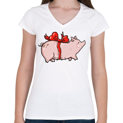 1 kép PRINTFASHION Ajándék malac - Női V-nyakú póló - Fehér