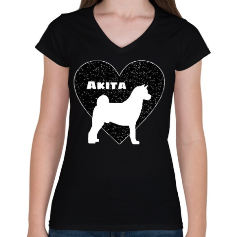 1 kép PRINTFASHION Akita - Női V-nyakú póló - Fekete