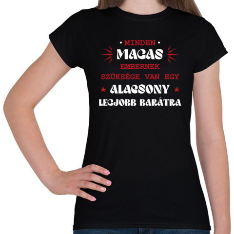 1 kép PRINTFASHION Alacsony legjobb barát - Női póló - Fekete