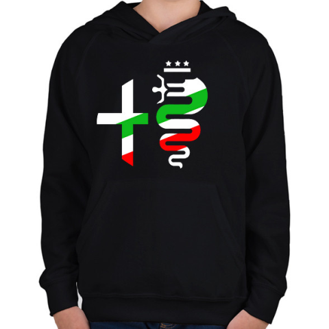1 kép PRINTFASHION Alfa Romeo - Gyerek kapucnis pulóver - Fekete