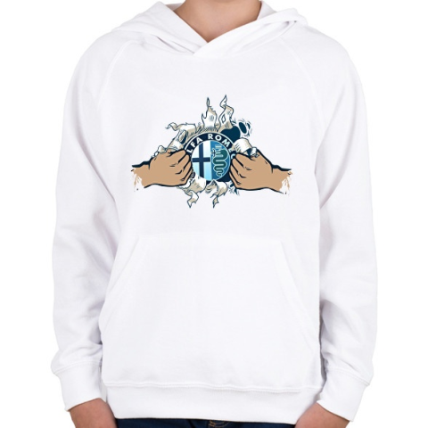 1 kép PRINTFASHION Alfa Romeo tépett minta - Gyerek kapucnis pulóver - Fehér