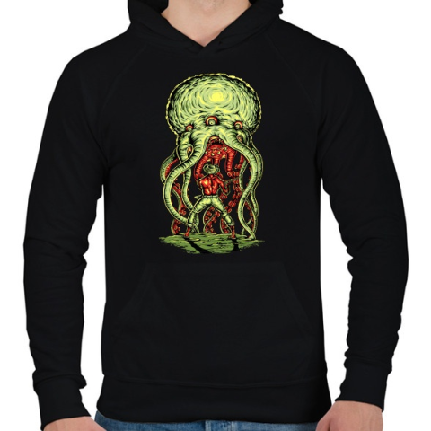 1 kép PRINTFASHION Alien támadás - Férfi kapucnis pulóver - Fekete