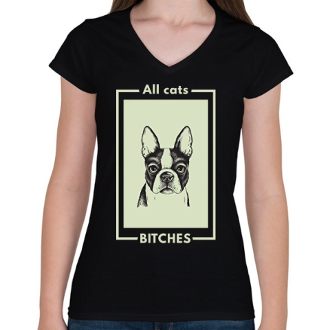 1 kép PRINTFASHION ALL CATS BITCHES - Női V-nyakú póló - Fekete