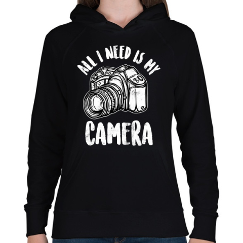 1 kép PRINTFASHION All I Need Is My Camera - Női kapucnis pulóver - Fekete