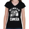 1 kép PRINTFASHION All I Need Is My Camera - Női V-nyakú póló - Fekete