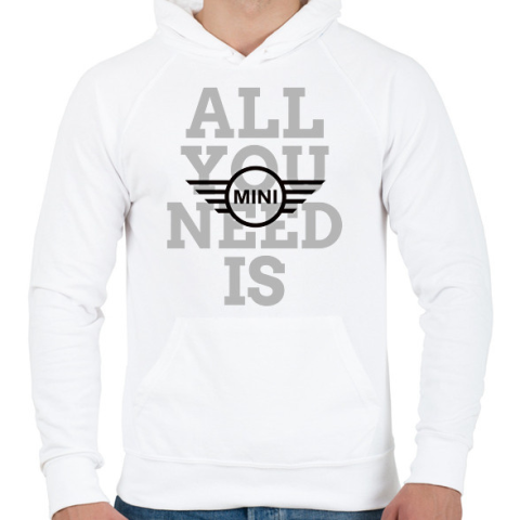 1 kép PRINTFASHION All you need is MINI - Férfi kapucnis pulóver - Fehér