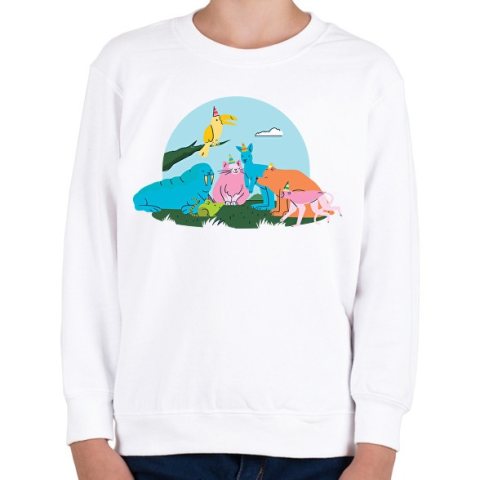 1 kép PRINTFASHION Állati party - Gyerek pulóver - Fehér
