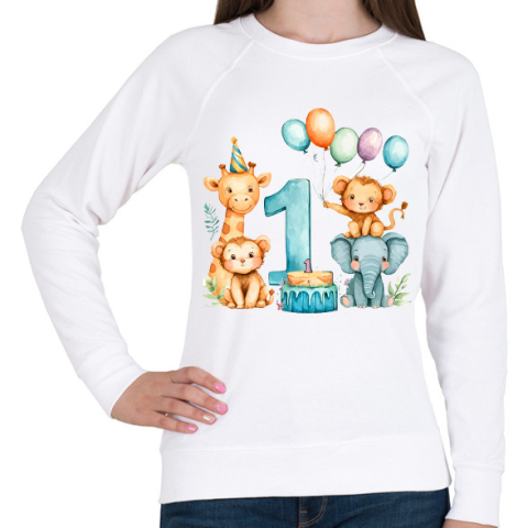 1 kép PRINTFASHION Állatok 1 éves szülinap - Női pulóver - Fehér