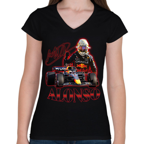 1 kép PRINTFASHION Alonso F1 - Női V-nyakú póló - Fekete