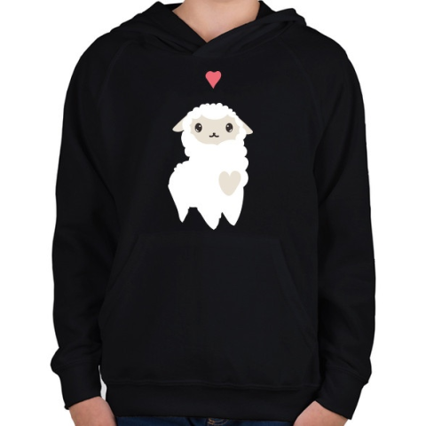 1 kép PRINTFASHION Alpaca - fehér - Gyerek kapucnis pulóver - Fekete