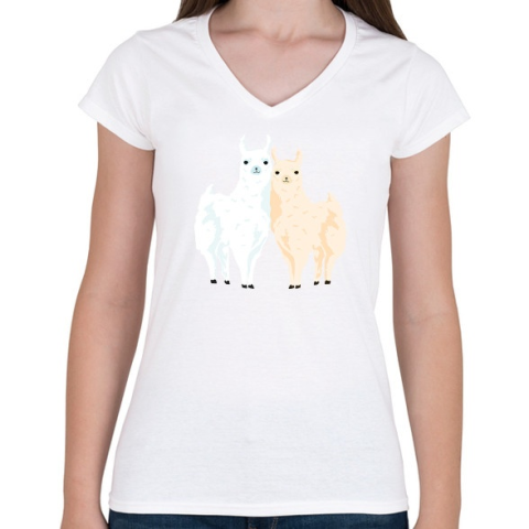 1 kép PRINTFASHION Alpaka pár - Női V-nyakú póló - Fehér