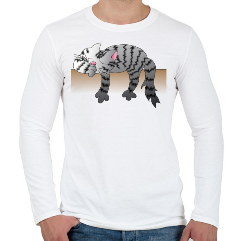 1 kép PRINTFASHION Alvó cic - Férfi hosszú ujjú póló - Fehér