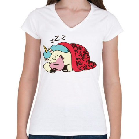 1 kép PRINTFASHION Alvó unikornis - Női V-nyakú póló - Fehér