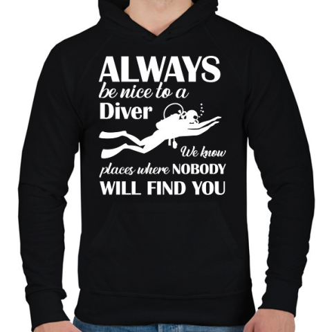 1 kép PRINTFASHION Always be nice to a diver - Fehér - Férfi kapucnis pulóver - Fekete