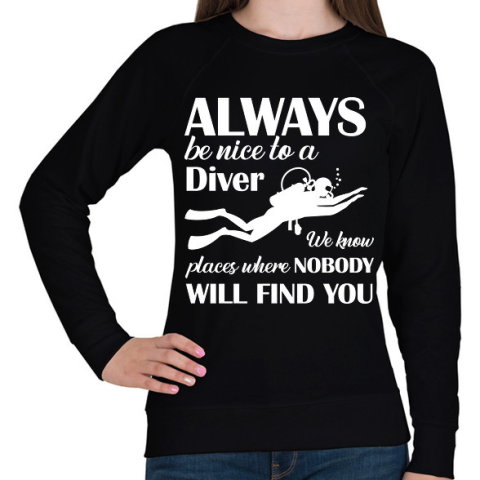 1 kép PRINTFASHION Always be nice to a diver - Fehér - Női pulóver - Fekete