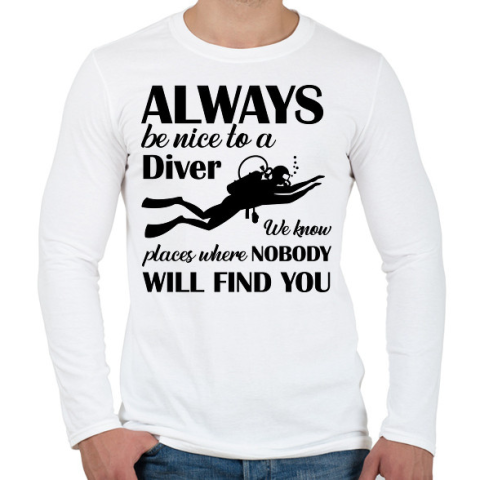 1 kép PRINTFASHION Always be nice to a diver - Fekete - Férfi hosszú ujjú póló - Fehér