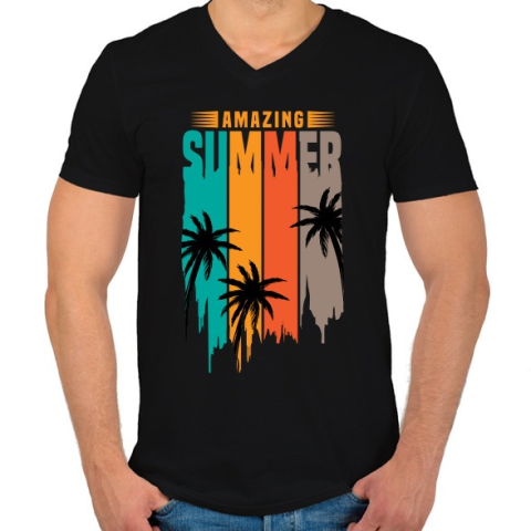 1 kép PRINTFASHION Amazing Summer - Férfi V-nyakú póló - Fekete