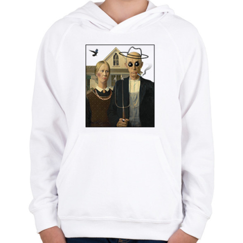 1 kép PRINTFASHION American gothic- Parody - Gyerek kapucnis pulóver - Fehér