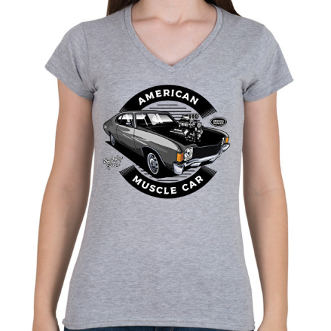 1 kép PRINTFASHION american muscle car - Női V-nyakú póló - Sport szürke
