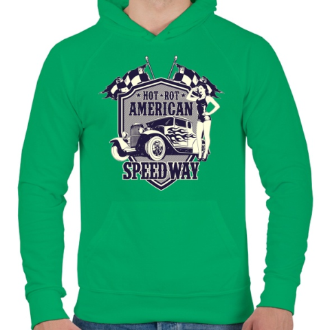 1 kép PRINTFASHION Amerikai hot rod - Férfi kapucnis pulóver - Zöld