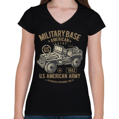 1 kép PRINTFASHION Amerikai katonai jeep - Női V-nyakú póló - Fekete