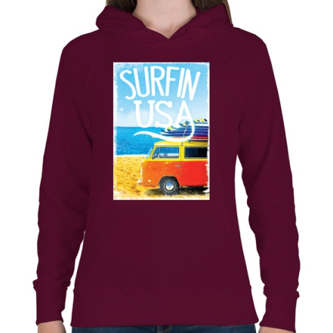 1 kép PRINTFASHION Amerikai szörfös - Női kapucnis pulóver - Bordó