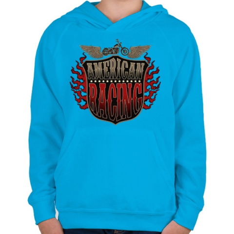 1 kép PRINTFASHION Amerikai verseny - Gyerek kapucnis pulóver - Azúrkék
