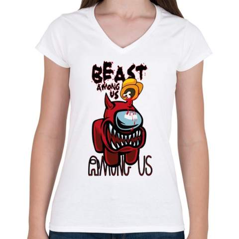 1 kép PRINTFASHION Among us beast among us - Női V-nyakú póló - Fehér
