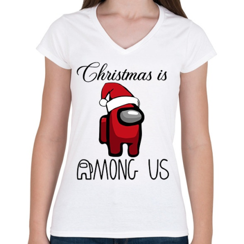 1 kép PRINTFASHION Among Us Christmas - Női V-nyakú póló - Fehér