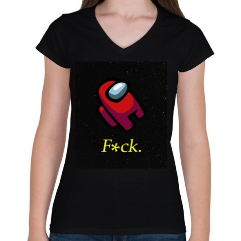 1 kép PRINTFASHION among us fuck - Női V-nyakú póló - Fekete