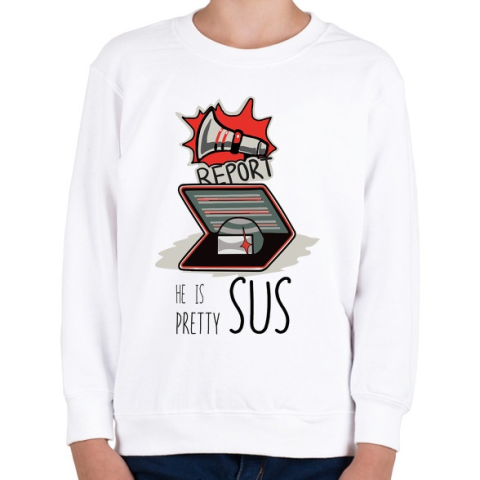 1 kép PRINTFASHION Among us - he is pretty sus - Gyerek pulóver - Fehér
