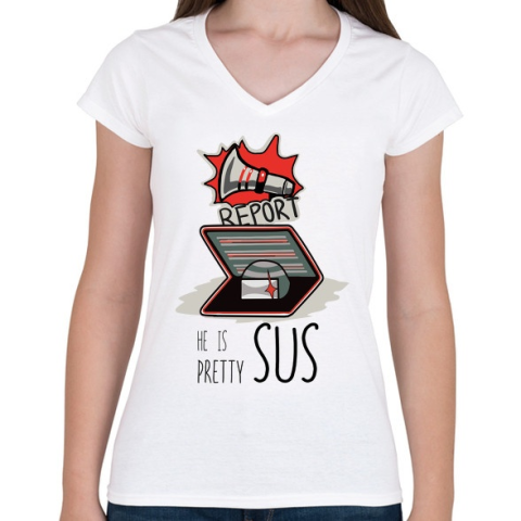 1 kép PRINTFASHION Among us - he is pretty sus - Női V-nyakú póló - Fehér
