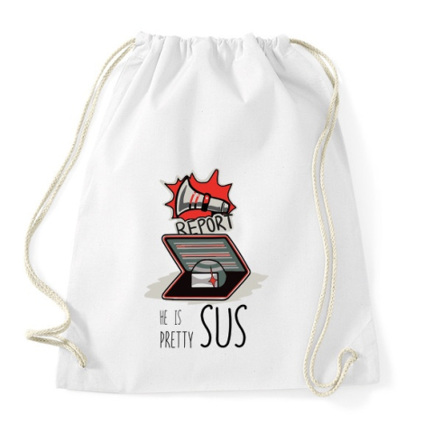 1 kép PRINTFASHION Among us - he is pretty sus - Sportzsák, Tornazsák - Fehér