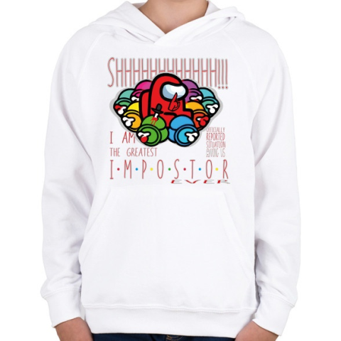 1 kép PRINTFASHION Among us - I am the greatest impostor - Gyerek kapucnis pulóver - Fehér