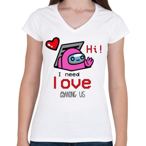 1 kép PRINTFASHION Among us - I need love - Női V-nyakú póló - Fehér
