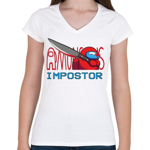 1 kép PRINTFASHION Among us IMPSTOR - Női V-nyakú póló - Fehér