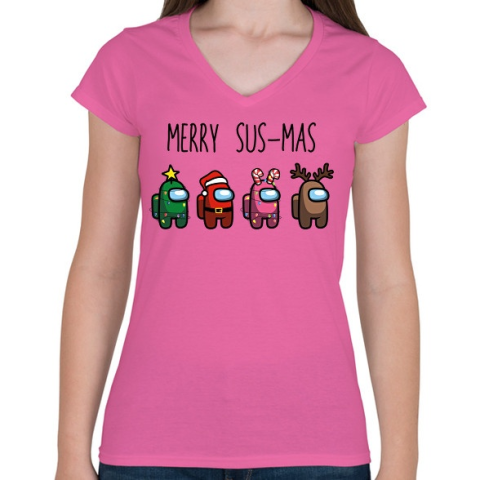 1 kép PRINTFASHION Among us merry sus-mas - Női V-nyakú póló - Rózsaszín