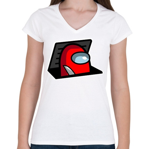 1 kép PRINTFASHION among us: red impostor - Női V-nyakú póló - Fehér